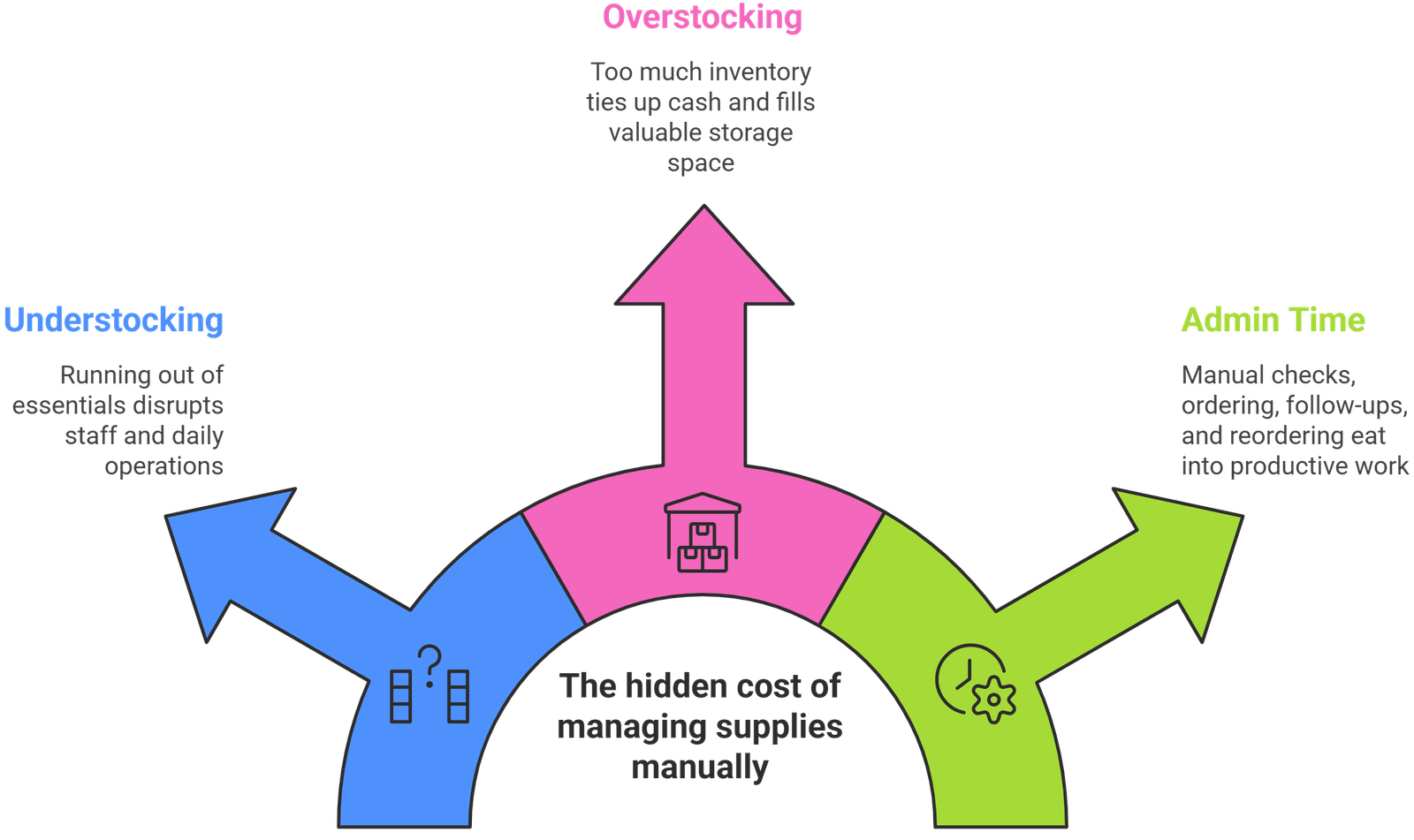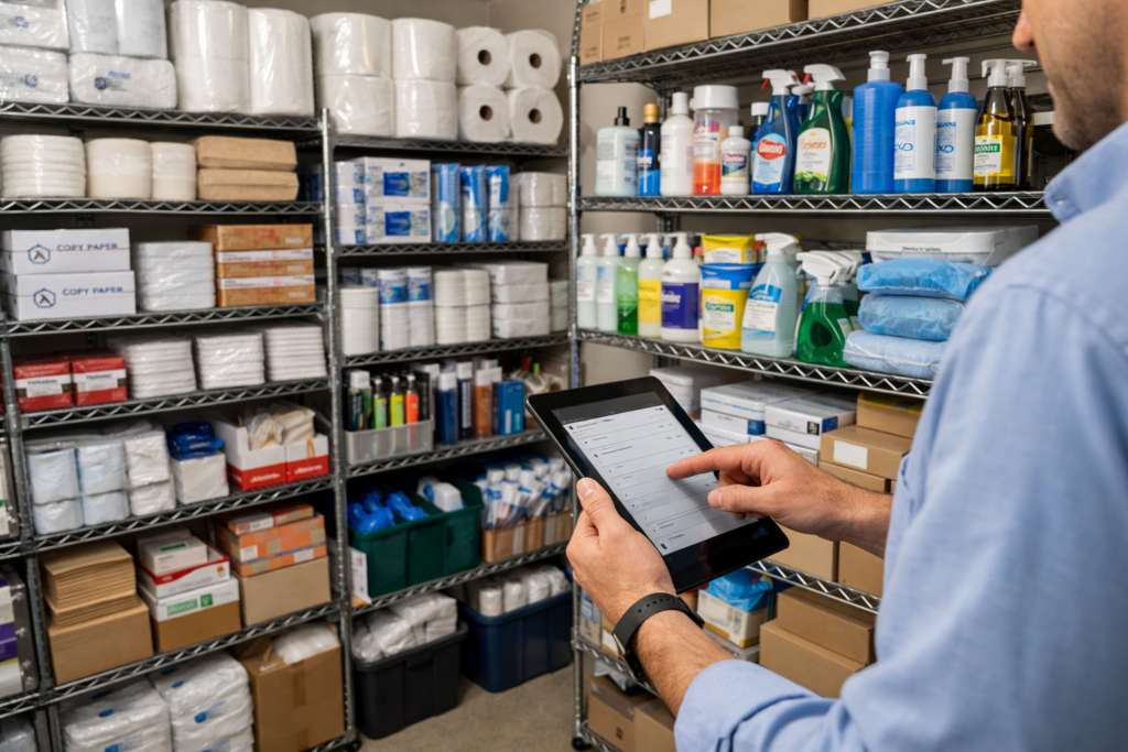 A hands-off workplace inventory service to keep your office, clinic, or workplace supplied without tying up staff time in ordering, counting, and chasing missing essentials.