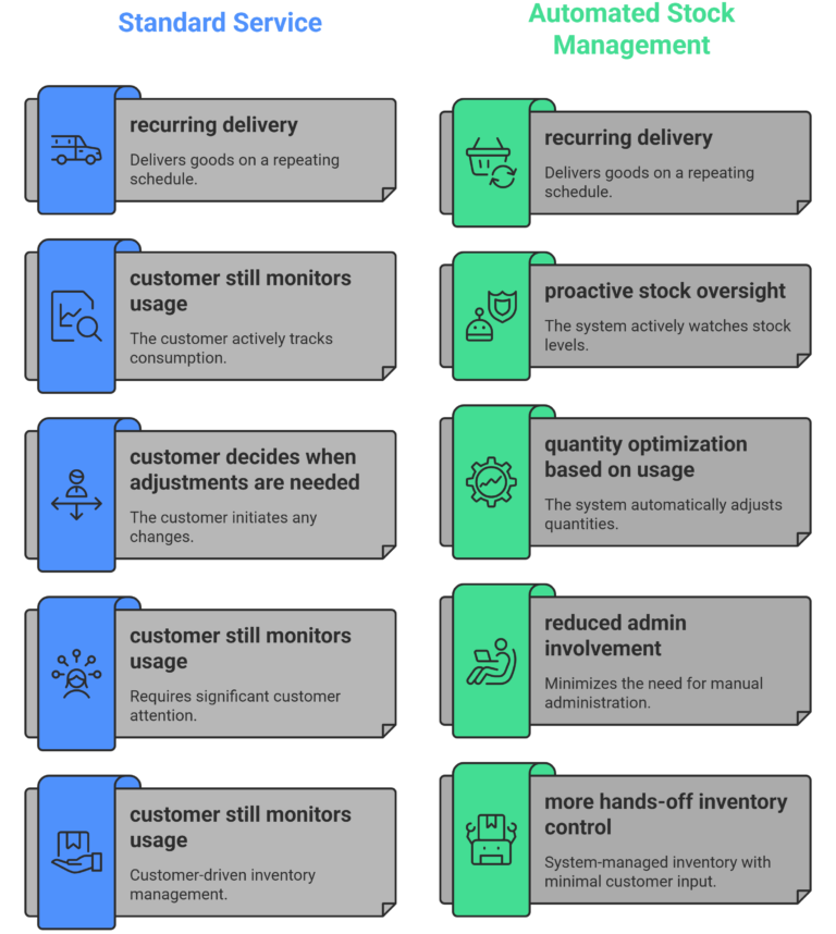 Go beyond standard replenishment with a premium service that helps reduce inventory guesswork, save admin time, and keep stock levels better balanced.